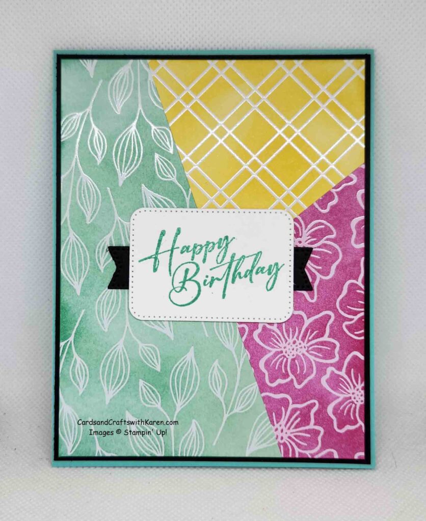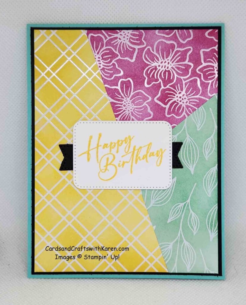 For my card I’m using Cloud Cover, Blackberry Bliss and Daffodil Delight.