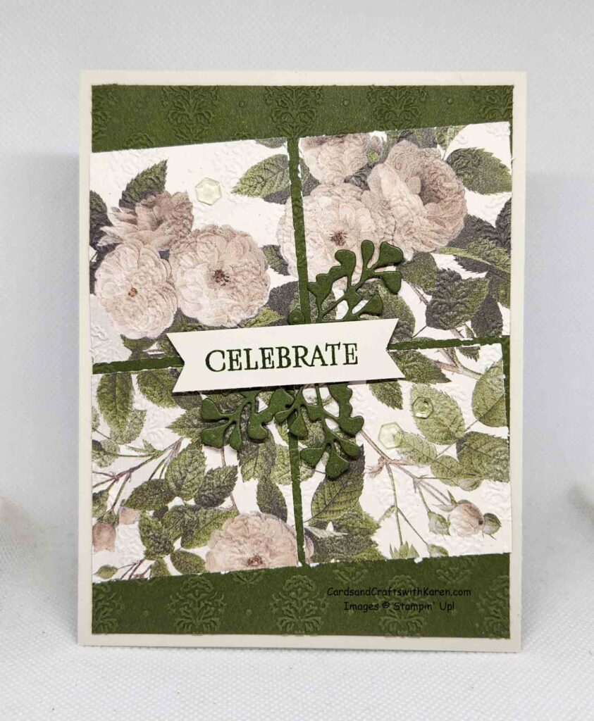 Second card with the template features products from the Beautiful Gallery Suite collection of products. For this card, I embossed the piece with the designer paper before adhering to the card base.