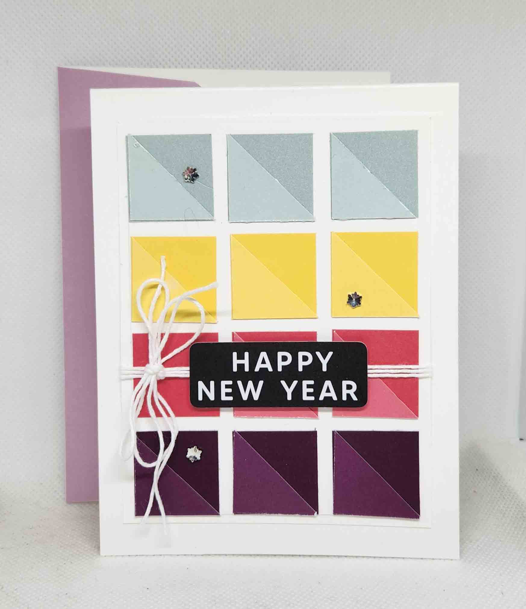 Here’s a card featuring the Celebrate Together Two-Tone cardstock cut in 1″ squares on Basic White card stock. Colors include Cloud Cover, Daffodil Delight, Strawberry Slush and Blackberry Bliss.