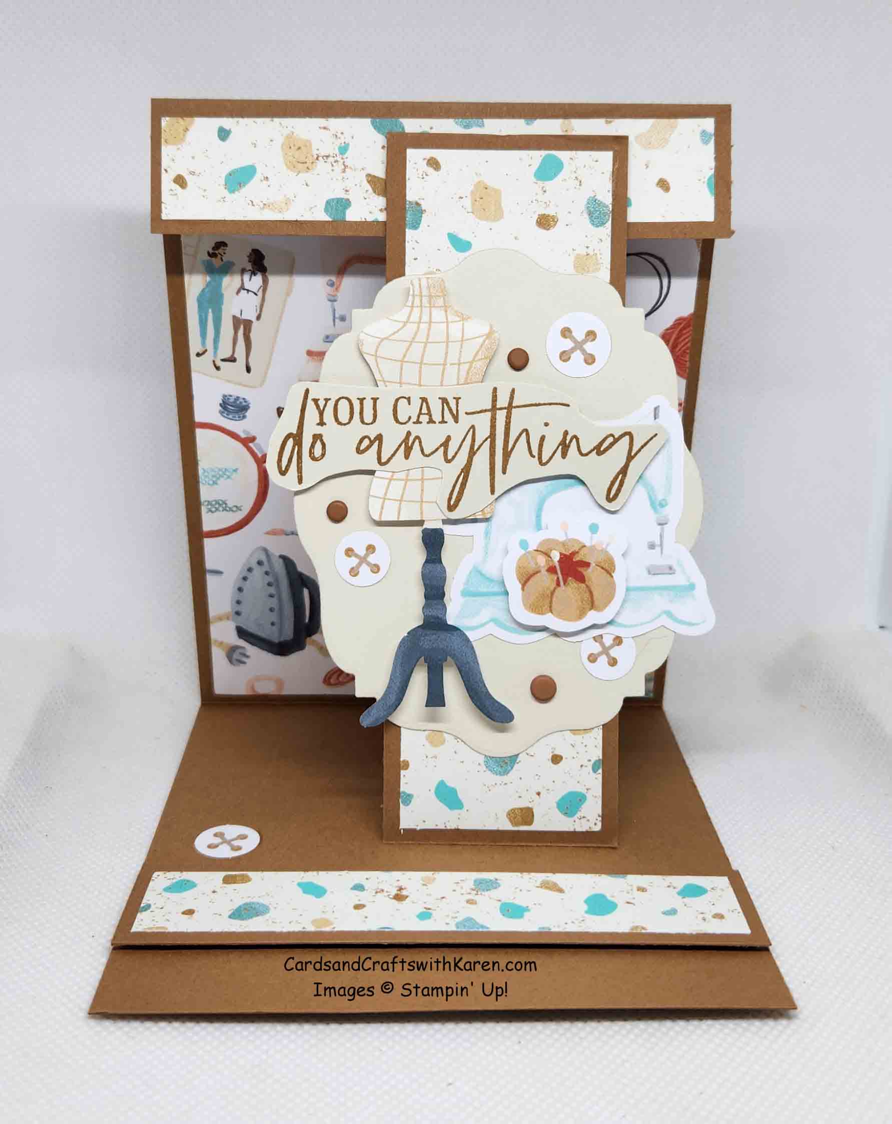 First up, the Fun Fold Easel card featuring the Hobby Haven Designer Series Paper. Color combination is Pecan Pie with Coastal Cabana and Basic Beige.